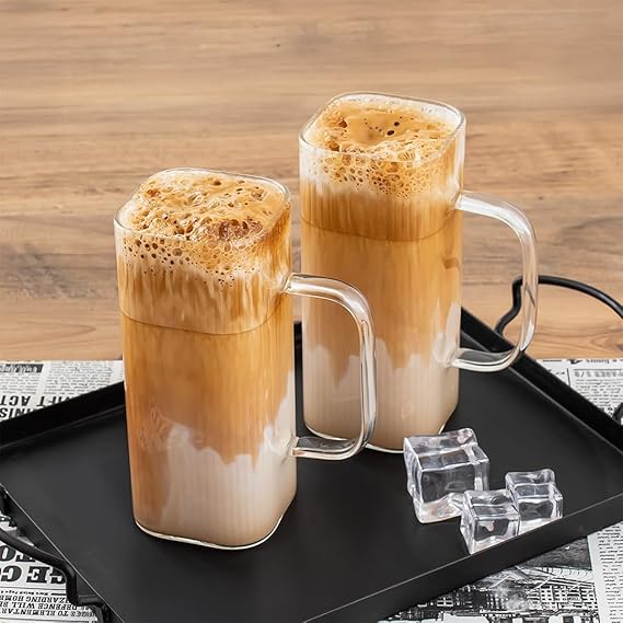 2’li Borosilikat Isıya Dayanıklı Latte Bardağı Su Bardağı Sunumluk Cam Kupa Bardak 2 Adet 380 ml