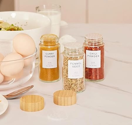 Doğal Bambu Kapaklı – Hava almayı önleyen kapaklar, baharatların tazeliğini korur.