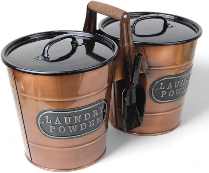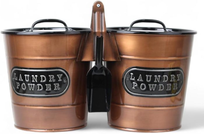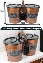 2’li Dev Boy Galvaniz Bakır Kaplama Metal Deterjan Saklama Kabı, Büyük Boy 2’li Deterjanlık