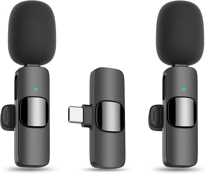 2’li Kablosuz Yaka Mikrofon Seti – TYPE-C Girişli, 1 Alıcı 2 Mikrofon, Bluetooth’suz Tak-Çalıştır, Gürültü Engelleme, iPhone 15/16 İle Uyumlu, Vlog, Röportaj, Canlı Yayın için