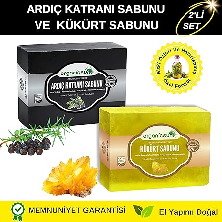 2’li Set Doğal Ardıç Katranı Sabunu ve Kükürt Sabunu Kaşıntı Karşıtı Sabun Seti