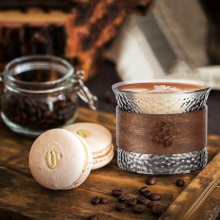 2’li set espresso fincanı cam 150 ml kahve fincanı, cam, yanmaz ahşap halkalı, espresso ve kahve fincanları espresso, çay, moka için
