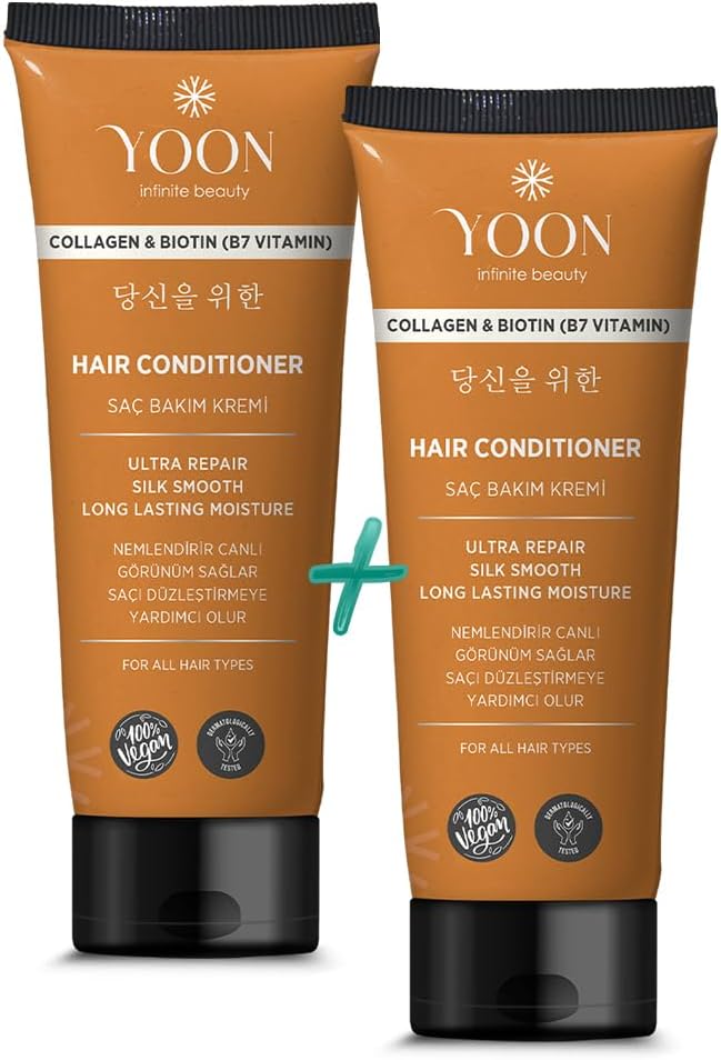 2’si 1 Arada Vegan Saç Bakım Kremi, Biotin, B7 ve Kolajen İçeren, Silikonsuz & Sülfat İçermeyen Nemlendirici, Saç Düzleştirmeye Yardımcı, Onarıcı ve Besleyici Saç Kremi 200ml
