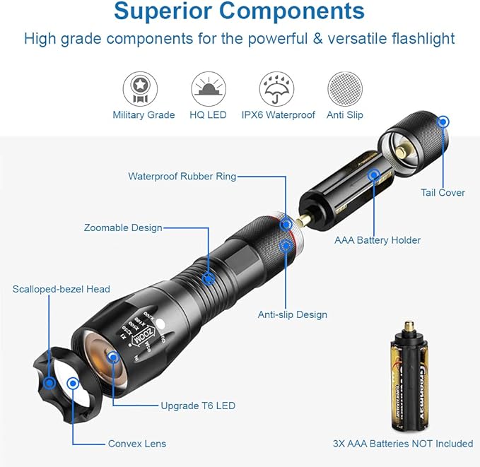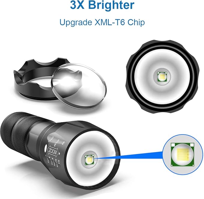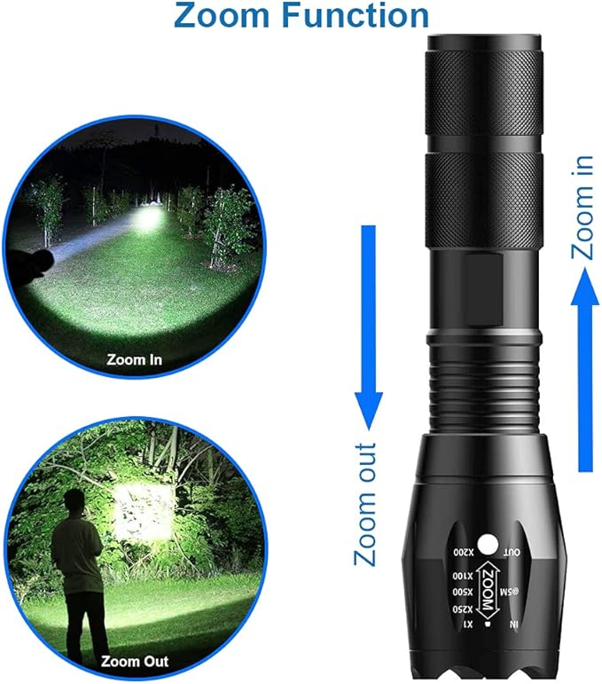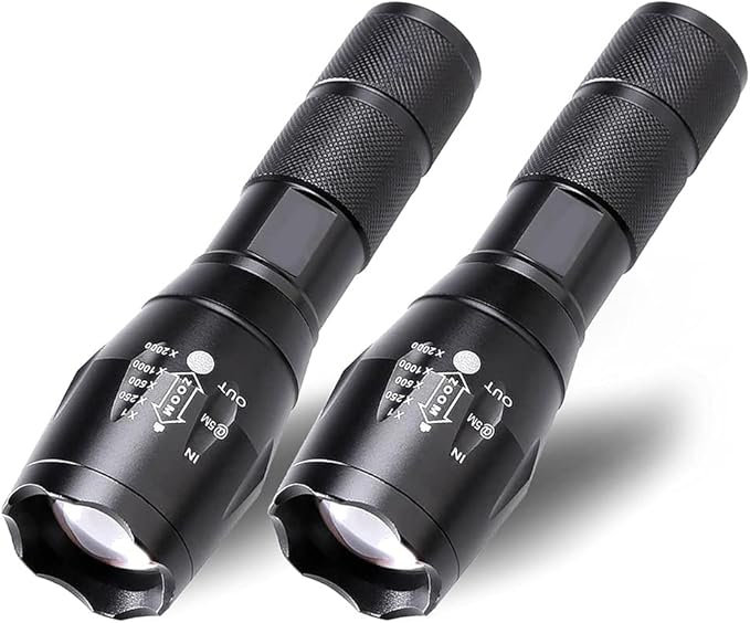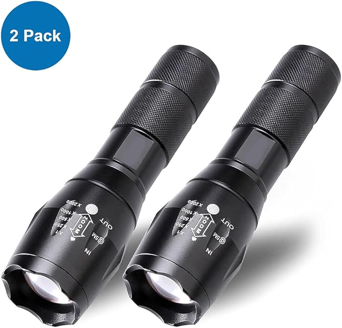 2X LED Taktik El Feneri Hayatta Kalma Ekipmanı – 1000 Lümen, 5 Modda Yakınlaştırılabilir, Suya Dayanıklı, Kamp El Feneri Hayatta Kalma, Kamp, Acil Durumlar, Dış Mekan için