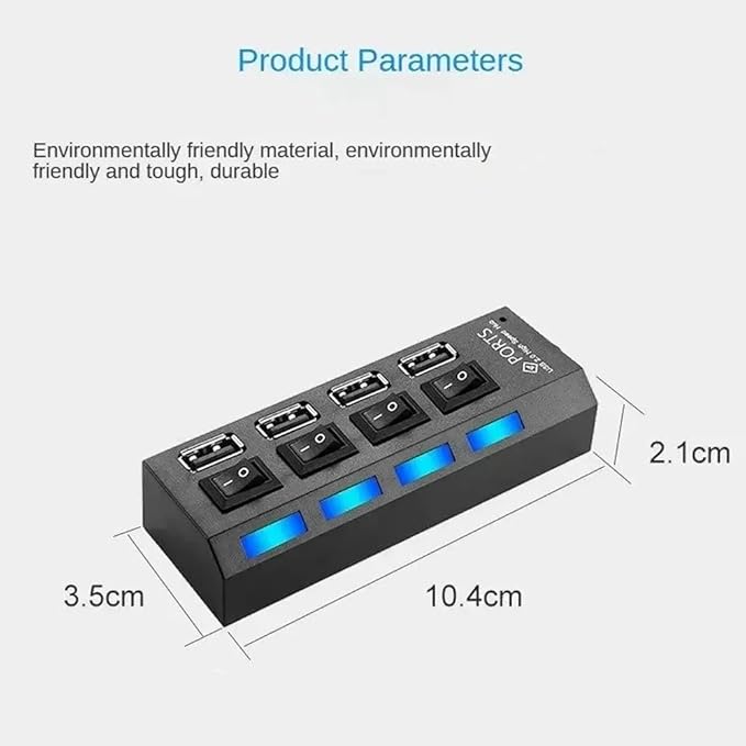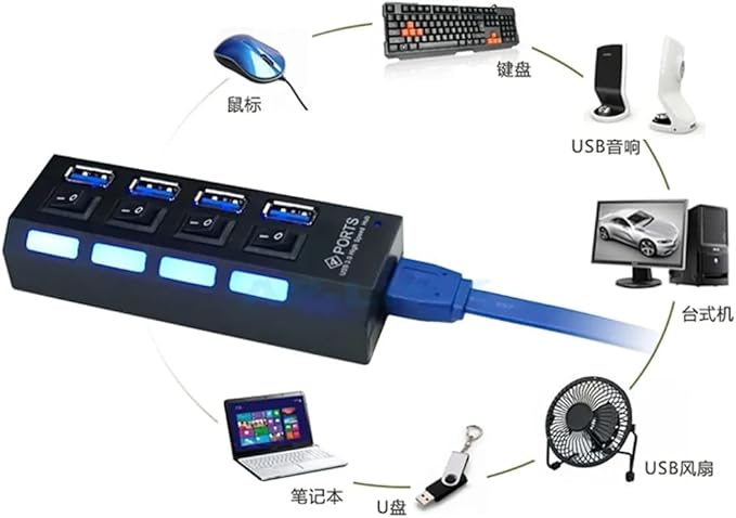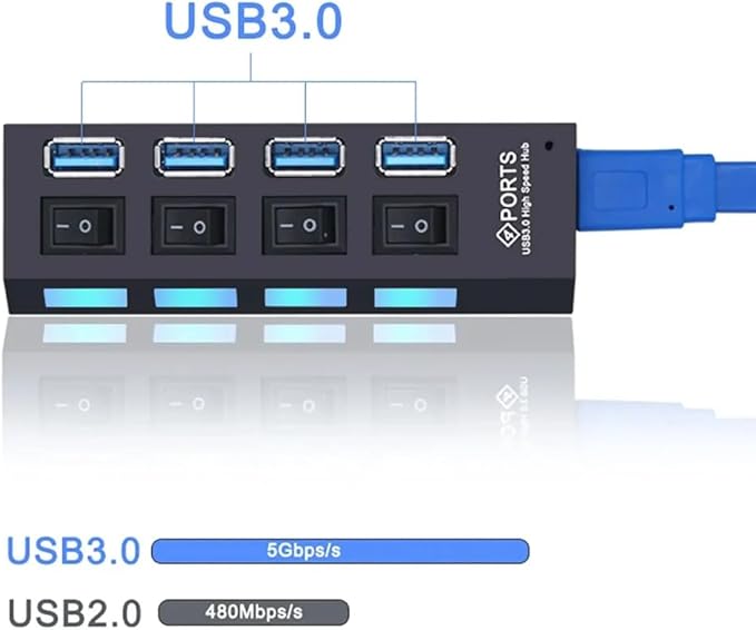 3.0 Çoklayıcı Hub, 4 Port, Anahtarlı ve LED Işıklı, 50 cm Kablo
