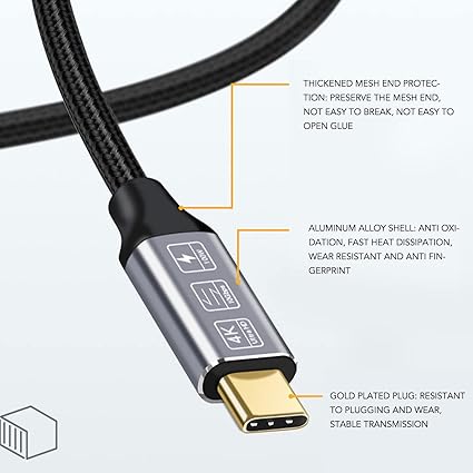 10 Gb/sn Veri Aktarımı: USB C kablosu, 10 Gb/sn’ye kadar yüksek hızlı eş zamanlı veri aktarımı sağlayabilir, büyük dosyaları saniyeler içinde aktarmak için SSD’yi bağlayabilir ve herhangi bir Şarjlı USB C cihazı için 100 W’a (5 A ve 20 V) kadar güvenli bir şekilde güç sağlamak için E Marker çipini kullanabilir son hızla.
