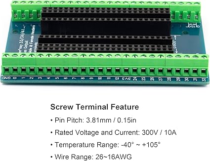 3.5/3.6/4.1 Modül Koparma Kartı için 48 Pin 3,81 mm / 0,15″ Arduino için Vidalı Terminal Genişletme Kartı (Diş Pin Başlık Sürümü, Erkek Pin Duyucu Olmadan)