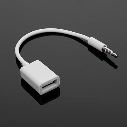 3.5mm Erkek Araba AUX Ses Jakı USB 2.0 Dişi Adaptör Dönüştürücü Kablosu OTG Kablosu (Beyaz)