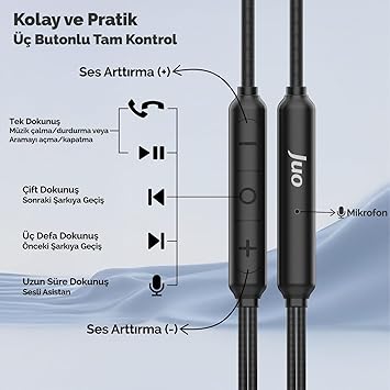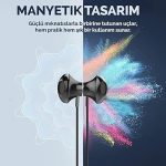 Manyetik Başlık Yenilikçi metal alaşımlı manyetik başlık tasarımı ile bu kablolu kulakiçi kulaklık, kullanmadığınız anlarda kolayca birbirine yapışarak karışmayı önler. Premium metal alaşım malzemesi sadece şık görünüm sağlamakla kalmaz, aynı zamanda dayanıklılığı artırarak uzun ömürlü kullanım garantisi verir. Manyetik özellik sayesinde boynunuzda taşırken düşme riski olmadan güvenle kullanabilirsiniz.