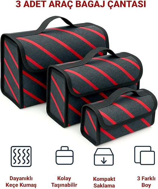 3 Adet Araç Bagaj Düzenleyici Çanta Organizer Araba Çantası Oto İçi Eşya Aksesuarları Düzenleme Otomobil Aksesuar Malzeme Toparlayıcı Bagaj Çantası