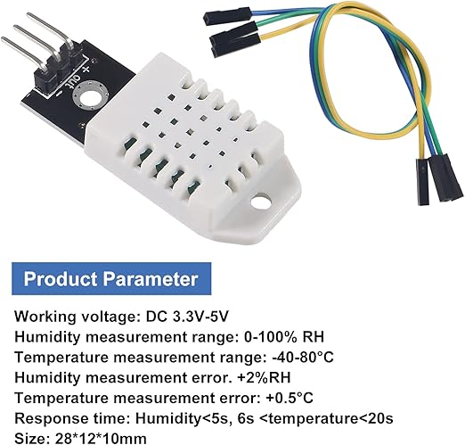 Model: DHT22; Ana Çip: AM2302 yüksek hassasiyetli sıcaklık nem sensörü. Tek veri yolu dijital sinyal çıkışı, çift yönlü seri veri
