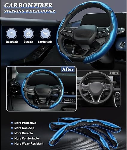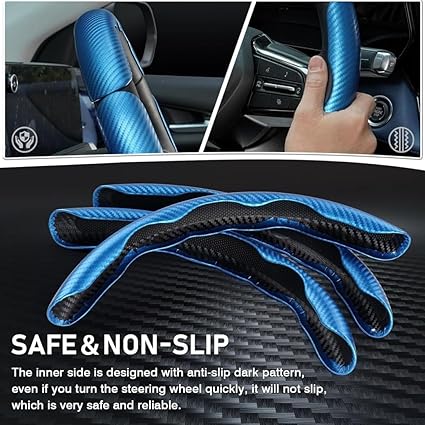3 adet karbon fiber silikon PVC direksiyon kılıfı, otomobiller için, özel kaymaz destek kılıfı, otomobil aksesuarı, 38 cm (siyah)