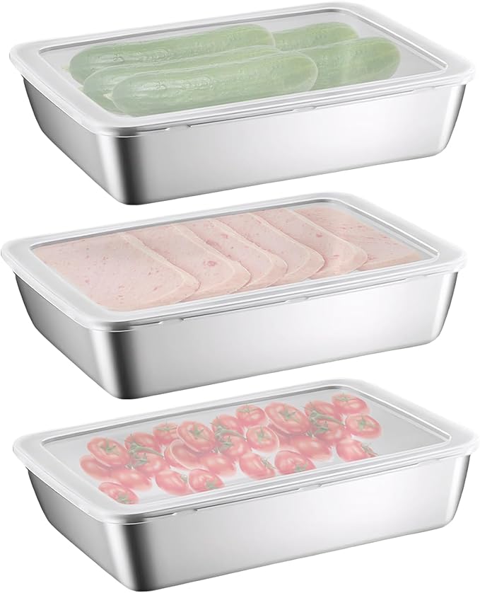 3 adet paslanmaz çelik yemek kutusu gıda kapları plastik kapaklı Deli et kapları saklama kutusu buzdolabı gevrek hava geçirmez kurabiye kabı salata tabağı sebze kabı buzdolabı için