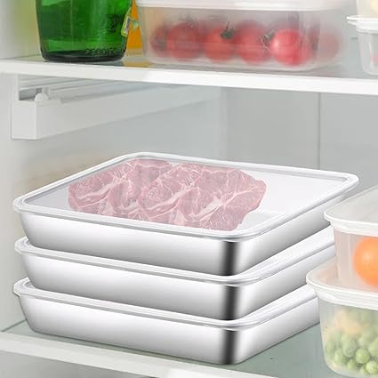 ✿【Sızdırmaz plastik kapak】Her paslanmaz çelik gıda kabı, sızıntıları ve dökülmeleri önleyen ve yiyecekleri taze ve güvenli tutan güvenli, hava geçirmez plastik bir kapakla birlikte gelir. Şarküteri etleri, bisküviler, salatalar ve sebzeleri saklamak için idealdir.