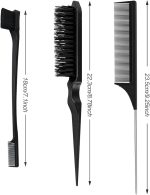 【Paket içeriği】: Set içerisinde 3 profesyonel şekillendirme aleti bulunmaktadır: Çift taraflı bir saç kenarı fırçası (17 cm), bir fırça (8,78 inç) ve şekillendirme ihtiyaçlarınızı karşılamak için ince bir kuyruk tarağı (9,2 inç).