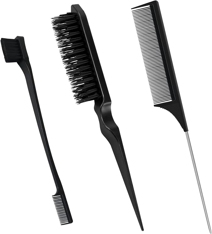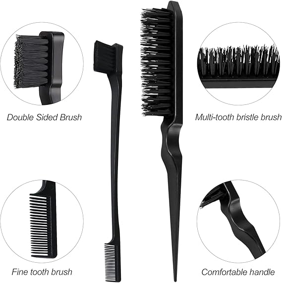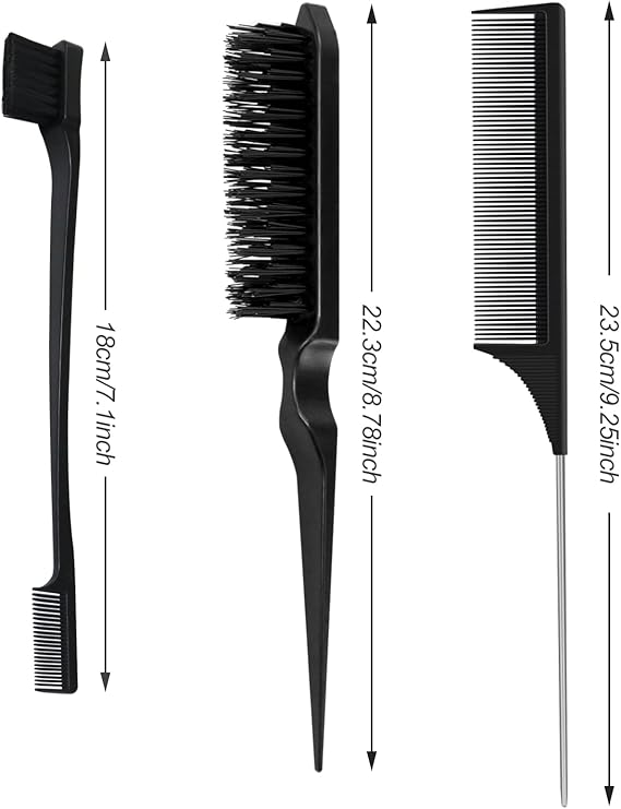 3 adet Sleek Topuz Fırça Seti, Çift Kenarlı Teasing Saç Fırçası ve Fare Kuyruğu Tarağı, Kıllar, Saç Kesimi, Saç Tarağı, Bakım Kenarları, Kuaför, Kadınlar, Bebekler, Çocuklar için