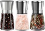 3 adet tuz ve karabiber değirmeni seti, 180 ml manuel baharat değirmeni, ayarlanabilir öğütücü, cam gövdeli baharat, tuz, karabiber için