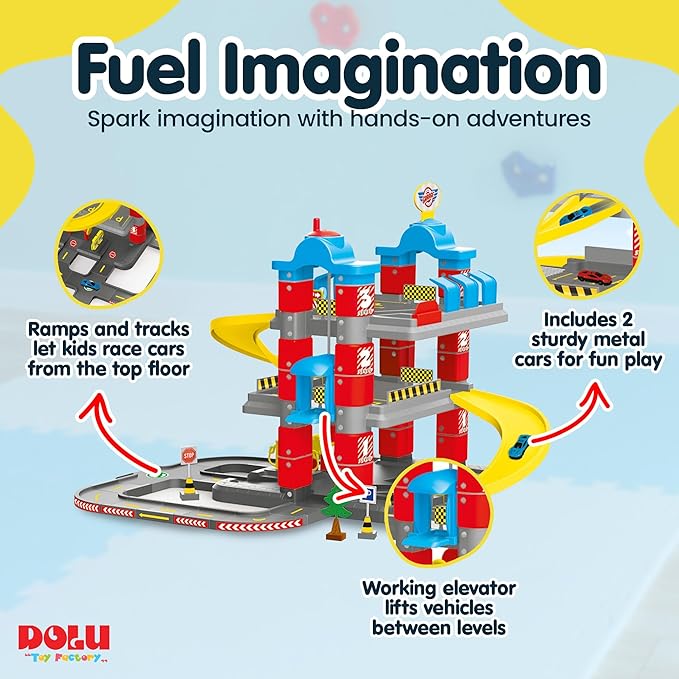 Çocukların üst kattan alt kata arabalarını sürdüğünde rol yapma eğilimlerine yararı vardır. Asansör özelliği mevcuttur