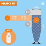 S/M Brabantia, Leifheit, Wenko ve Vileda gibi 30 – 42 cm genişliğinde ve 100 – 125 cm uzunluğunda tüm markaların ütü masaları için uygundur