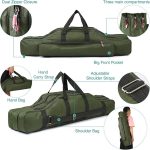 Geniş: Çanta, rulolu ve diğer aksesuarlarla birlikte olta takımınızın sığabileceği üç ana bölmeye sahiptir; yem, şamandıra ve cihaz kutusu gibi küçük eşyalar için ön cepler.
