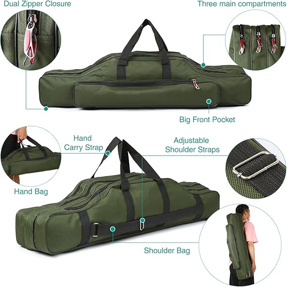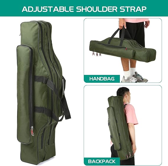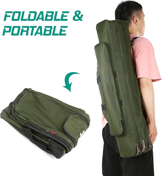 3 Katmanlı Balık Tutma Direği Çantası Taşınabilir Katlanır Çubuk Taşıma Çantası Balık Tutma Makarası Taşıma Çantası