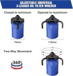 3 kollu yağ filtresi anahtarı, evrensel yağ filtresi örümcek yağı filtresi pençe yağ filtresi temizleme aracı tahrik adaptörü ile arabalar, motosikletler, kamyonlar, çap 70mm-110mm