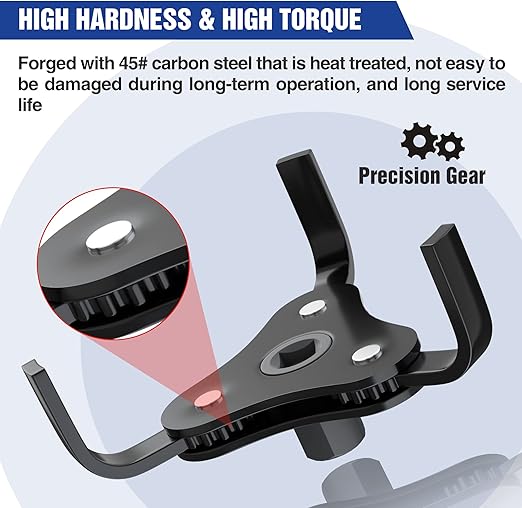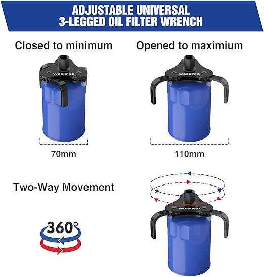 【Evrensel Tasarım】3 kollu yağ filtresi anahtarı ayarlanabilir ve 70 ila 110 mm çapındaki yağ filtrelerine mükemmel uyum sağlar. Yağ filtresi anahtarı ile bir yağ filtresi hızlı ve kolay bir şekilde çıkarılabilir.