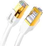Ethernet kablosu Cat 7 yuvarlak, LAN / WLAN kablosu, altın kaplama RJ45 fişli, ağ kablosu %100 bakır sert döşeme kablosu, SFTP, 28 AWG, beyaz. Bilgisayarlar, yazıcılar, yönlendiriciler ve daha fazlası gibi ağ cihazlarını bağlamak için.