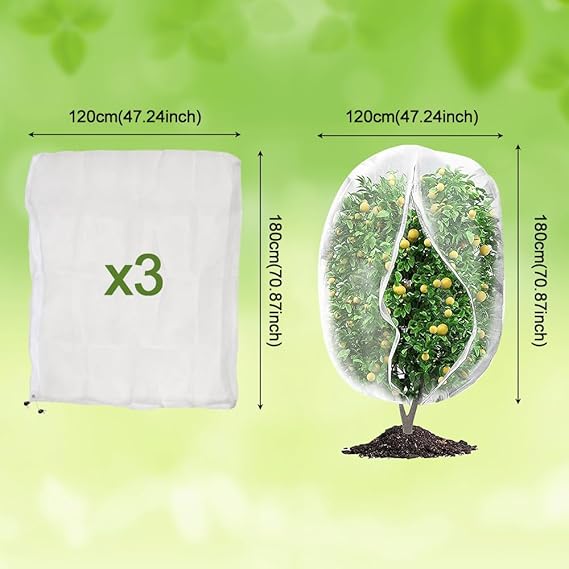 Fermuar ve Çizim Halatı Tasarımı: Seçebileceğiniz 140x100cm (55″ x 39″) / 120×180 cm (47″ x 70″) boyutunda büyük meyve ağacı ağımız var. Doğru bedeni seçin, bitkilerin üzerine kaydırın ve ipi sıkın, sıkıştırın ve kullanıma hazır olun.