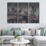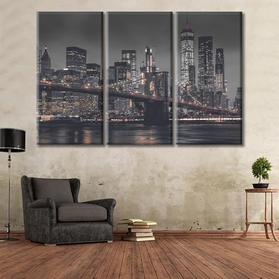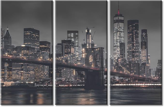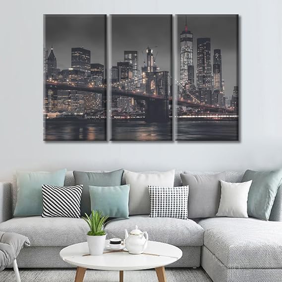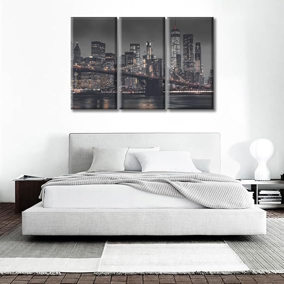 3 Panel Brooklyn Köprüsü New York City Duvar Sanatı Siyah Beyaz Şehir Manzarası Kanvas Duvar Sanatı Resimleri Posterler ve Baskılar Yatak Odası Ev Dekoru için Duvar Dekoru Çerçeveli Asmaya
