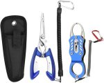 3 Parça Balıkçılık Pensesi ve Balık Tutucu Seti, Balıkçılık Makası Kanca Sökücü Balık Taşıma Çizgi Kesme ve Bölme Halkaları için Çoklu Aletler, Paslanmaz Çelik (Mavi)