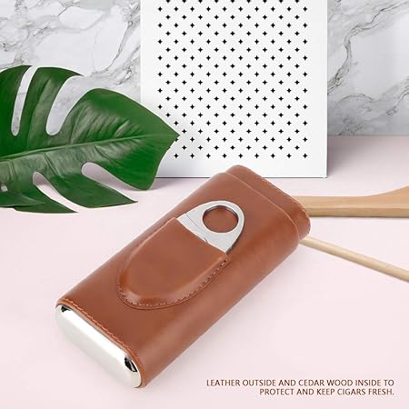 3 Parmak Deri Puro Kılıfı, Sedir Ağacı Astarlı Puro Neme Taşınabilir Seyahat Puro Kılıfı, Taşınabilir Deri Puro Kılıfı Sedir Ağacı Astarlı Puro Neme, Kesici, Siyah, Kahverengi