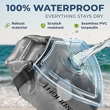 ✅ SENİN İÇİN ÖNEMLİ OLANI KORUR: Yaz, güneş, su baskını – Nørdlight sayesinde değil! Telefonun suya batmaz, ama bizim kuru çantalarımız öyle. %100 su, kum ve kir koruması için kapağı 3-4 kez sarın ve klipsleri birleştirin. Çantanın şişmesini isterseniz içinde hava bırakmanız yeterlidir.