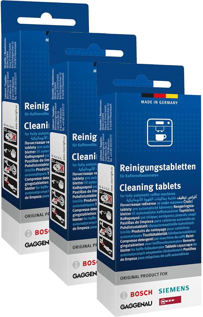 B/S/H temizleme tabletleri Bosch, Siemens, Gaggenau ve Neff üreticilerinin tam otomatik kahve makinelerinin temizliği için idealdir