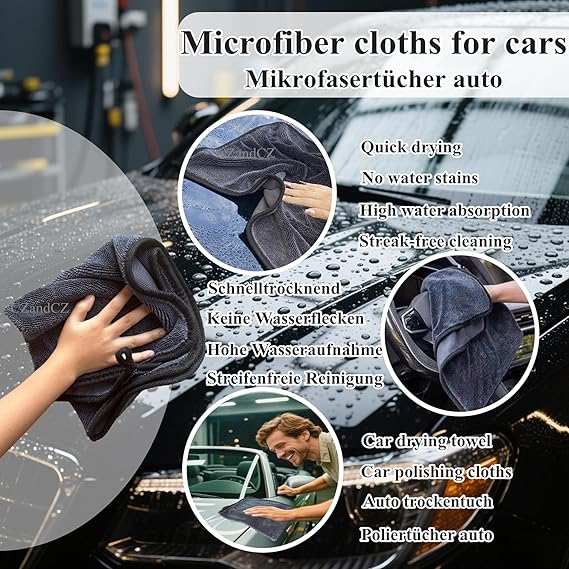 3 x mikrofiber bez, araç kurulama bezi, XXL, 40 x 60 cm, Fast Dry mikrofiber temizleme bezi, banyo, araba, ev, kamp, duş için kurulama bezi, 600 GSM