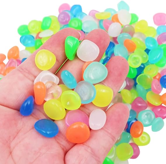 300 adet Parlayan Taş Işıklı Kaldırım Taşları, Parlayan Çakıl Taşları, Bahçe Çakılları için Işıklı Taş Çakıl Bahçe Yolu Avlu Akvaryum Balık Tankı Dekorasyonu (17-13 mm, Karışık Renk)