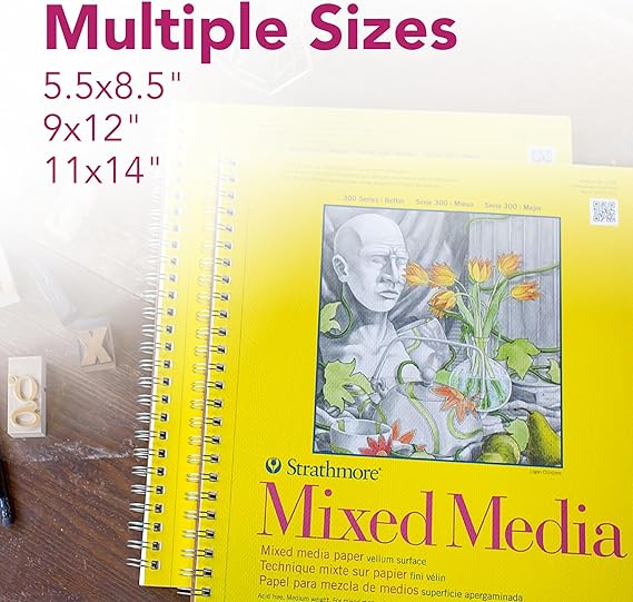 300 Serisi Karışık Ortam Kağıt Pedi, Yan Tel Ciltli, 11×14 inç, 40 Yaprak (117 lb/190 g) – Yetişkinler ve Öğrenciler için Sanatçı Kağıdı – Suluboya, Guaj, Grafit, Mürekkep, Kalem, Marker