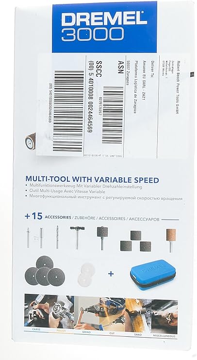 Teslimat kapsamı: Dremel 4000, esnek mil, 65 aksesuar, şerit ve daire kesici, şekillendirme platformu, tam kavrama bağlantı parçası, çanta