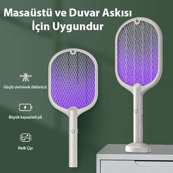 3000W Şarjlı UV Işıklı Elektrikli Sivrisinek Kovucu Öldürücü MasaÜstü El Tutmalı Sinek Kovucu Beyaz