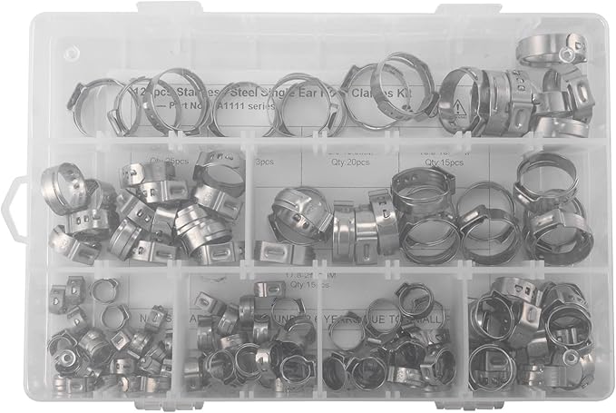 304 Paslanmaz Çelik Kulak Çelik Olmayan Hortum Kelepçesi Sınıflandırma Kiti, 128 Parça