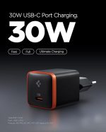 30W USB-C Ultra Mini Hızlı Şarj Aleti Samsung PPS/Isı Düşürücü GaN Akım Korumalı PD 3.0 Protokol Güç Adaptörü iPhone & Android & iPad & MacBook Type-C Black- ACH08448