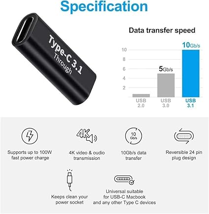 3352 Type C Usb 3.1 Dişi Çevirici Dönüştürücü Adaptör Type C Dişi To Type C DiSi 3.1 Yüksek Hızlı Veri Aktarım Desteği (10Gbps) Çift Yönlü Çalışma Alüminyum Alaşımlı Kaliteli Malzeme