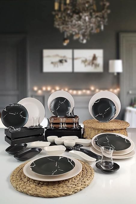 36 Parça 6 Kişilik Kahvaltı Takımı Mermer Desenli