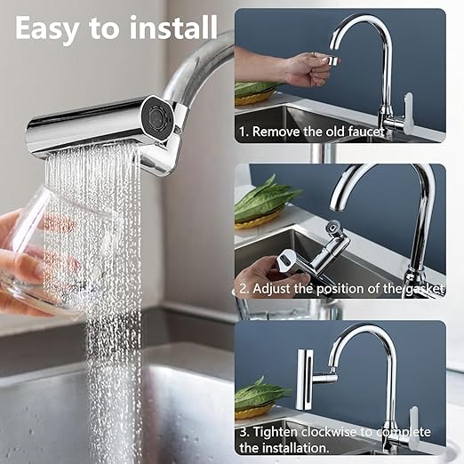 360 Derece Döner Şelale Musluk Başlığı – 4 Fonksiyonlu Mutfak Batarya Başlığı