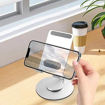 360° Döner Telefon Tablet Standı – iPad, iPhone, Android ve Tüm Cihazlarla Uyumlu Ayarlanabilir Masaüstü Tutucu | Yüksek Stabilite, Çok Açılı Görüntüleme Gümüş