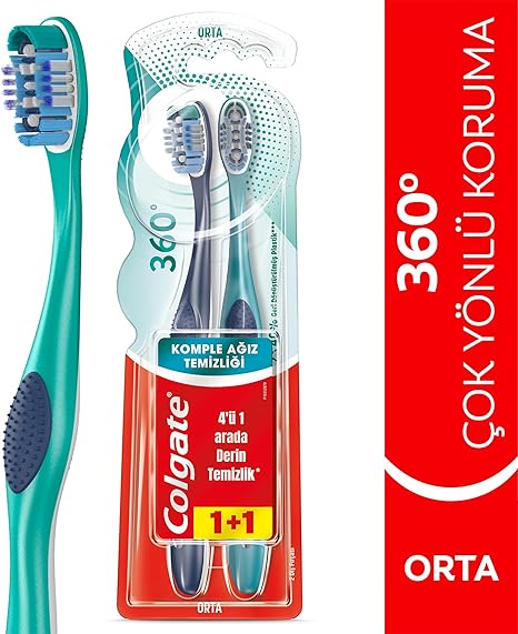 360 Komple Ağız Temizliği Çok Yönlü Koruma Orta Diş Fırçası 1+1
