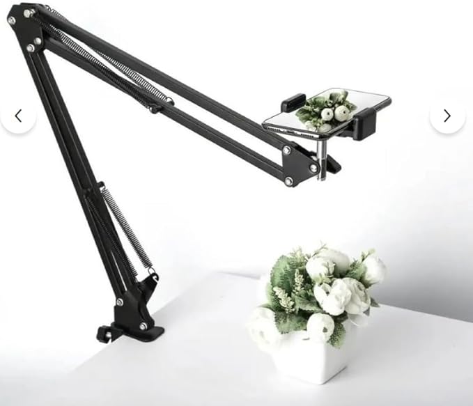 360° Üst Çekim Masaüstü Telefon Tripodu | Ayarlanabilir Süspansiyon Kol, Metal Kaymaz Taban, Evrensel Telefon Tutucu, Siyah