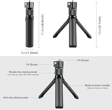 Üstte 1/4 vida bulunan 360 derece dönen bir tutamaktır ve masaüstü tripod olarak da kullanılabilir