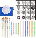 37 adet Mandala Noktalama Araçları Seti Şablonlar Palet Boya Fırçası Top Kalemler Boyama Kayalar Tırnaklar Tuval Boyama Sanatı Çizim
