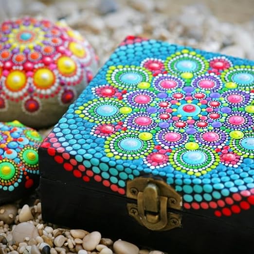 Noktalama araçları, kayalara, kağıda, gerilmiş tuvale veya diğer birçok yüzeye güzel mandala sanatı yaratmak için noktalar çizmeye uygundur.